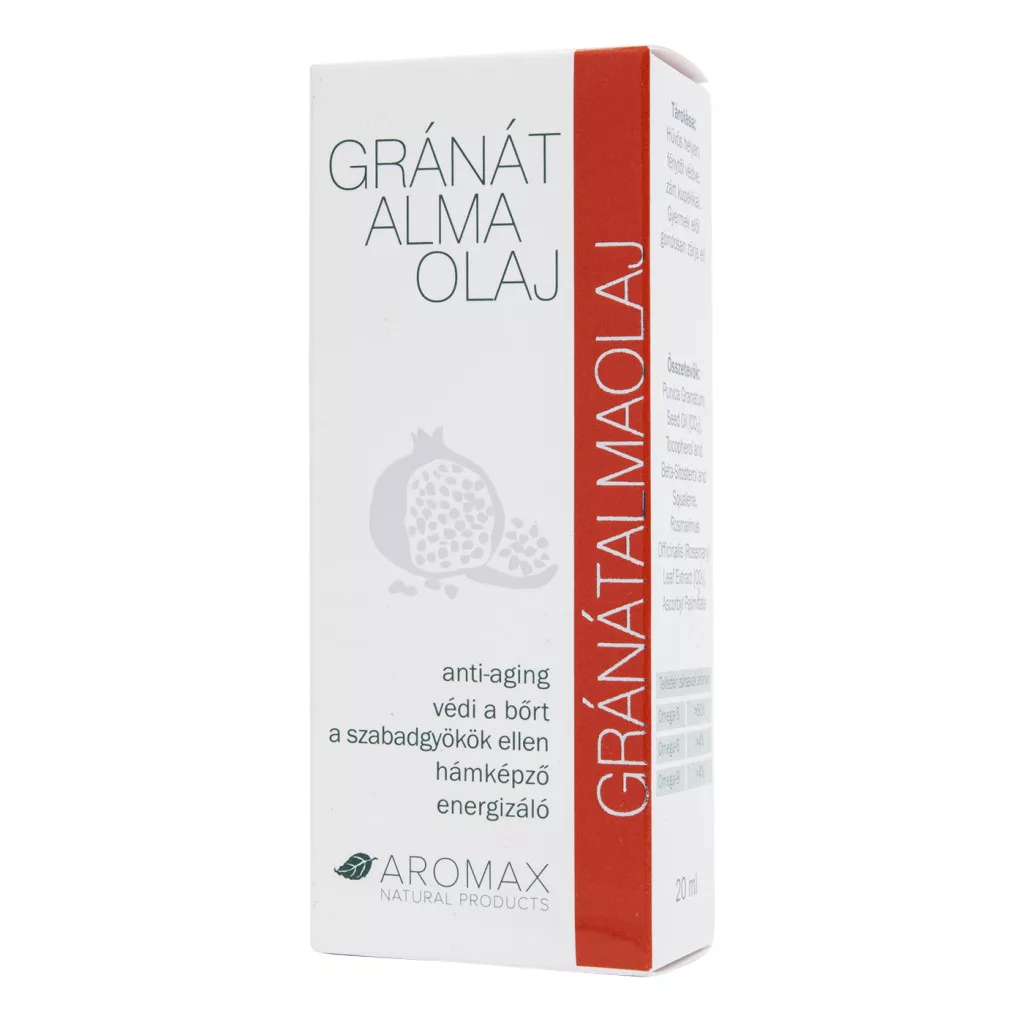 A biotermesztésből származó gránátalma magjából kíméletes, CO2-os kivonatolással előállított olaj egyedi zsírsav összetételének köszönhetően igen értékes és keresett hatóanyag az anti-aging bőrápolásban. Az antioxidánsokban (tokoferolok), fitoösztrogénekben és konjugált zsírsavakban (omega-5 / super-CLA) gazdag olaj gyorsan beszívódik a bőrbe, kellemes, olvasztott csokoládéra emlékeztető illatot hagyva hátra. Lassítja az öregedési folyamatokat, helyreállítja a bőr rugalmasságát. Erősíti a bőr természetes védekezőképességét, csökkenti a bőrön keresztüli vízvesztést. Védi a bőrt a szabadgyökök káros hatása ellen, bőrregeneráló hatású. Száraz, érzékeny bőr kezelésére is használható.