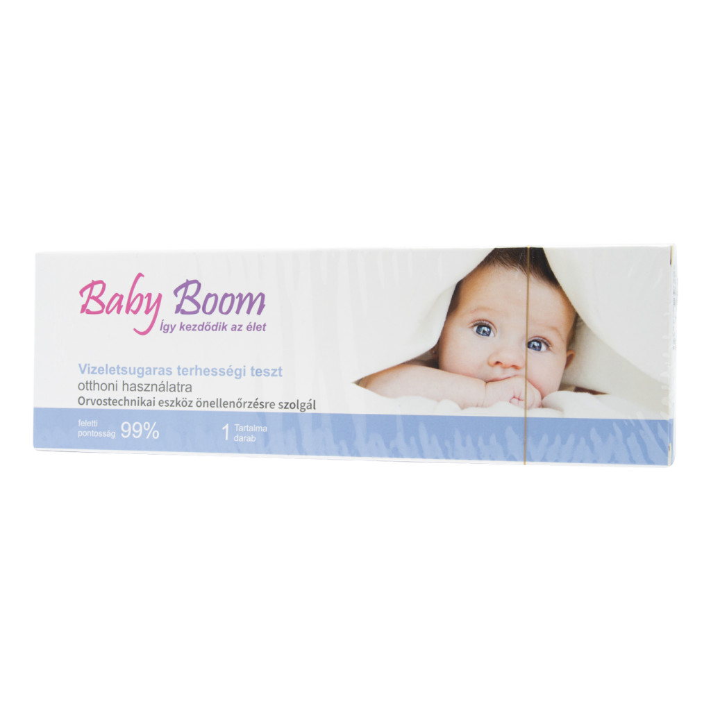 A teszt elvégzése előtt mindig olvassa el a mellékelt használati útmutatót. A Baby Boom vizeletsugaras terhességi teszt használatkor közvetlenül a tesztrúdra kell pisilni.