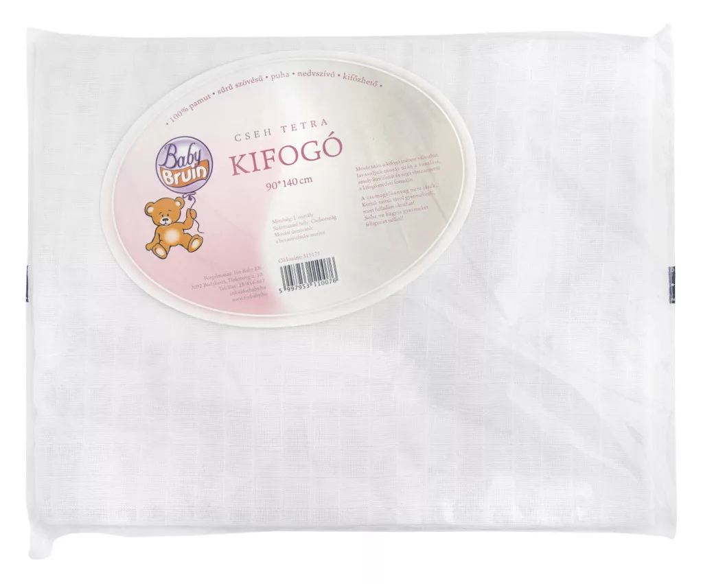 A Baby Bruin tetra kifogó 90 × 140 cm-es méretben ideális választás a baba fürdetéséhez. Puha, kényelmes anyaga biztosítja a bőr védelmét, míg a praktikus mérete megfelelően körülöleli a babát. Ideális kiegészítő a baba mindennapi fürdetési rutinjához.