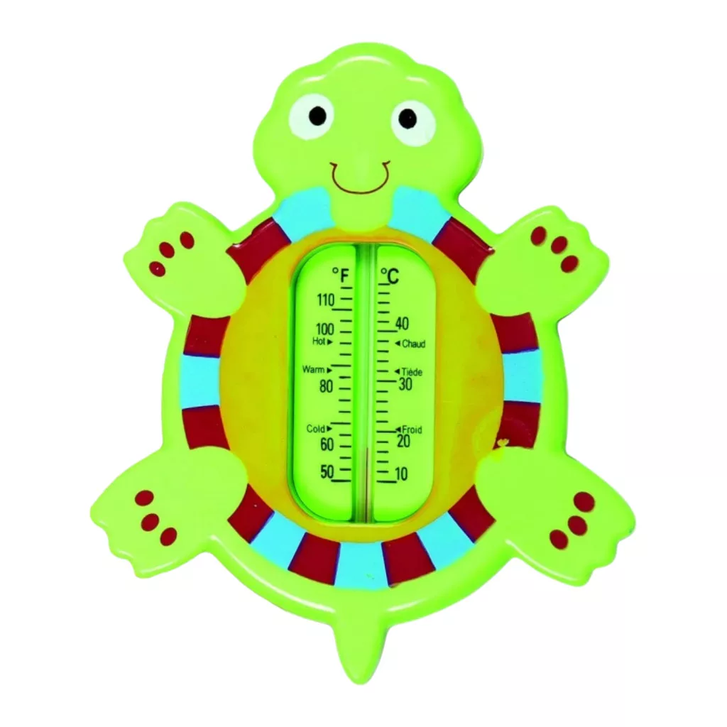 A Baby Bruin vízhőmérő teknős praktikus és biztonságos kiegészítő a babafürdetéshez. Lekerekített formájának köszönhetően a kicsik számára teljesen biztonságos, és a fürdés közben sem okoz sérülést. A hőmérő beosztása könnyen és pontosan leolvasható, így egyszerűen ellenőrizhető, hogy a víz hőmérséklete ideális legyen a baba számára.
