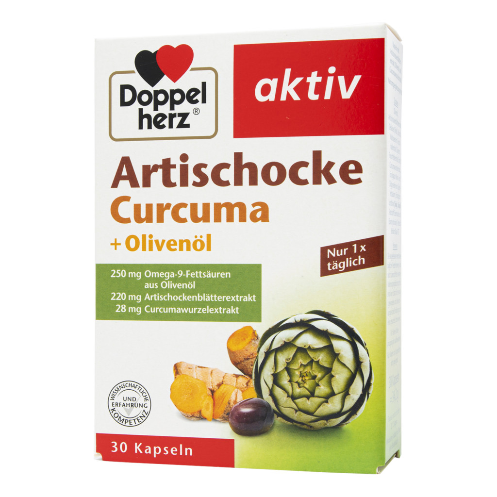 Az articsóka egy nagy tradícióval rendelkező haszonnövény a Fölközi-tenger térségéből. Mostanság mindenki erről a nagyon becses, értékes tápanyagokat tartalmazó zöldségféléről beszél. Ízét a kellemesen gyógynövényes és az enyhén keserű között határozzák meg. Indiában a kurkuma egy szent fűszernövény, amit már évezredek óta használnak. Mindazonáltal Európában az emberek a kurkumát elsősorban a curry alkotóelemeként ismerik. A kurkuma világos sárga és jellegzetes sárga színt kölcsönöz a curry-nek, ebből következik, hogy nálunk sárgagyökérnek is nevezik. Az olívaolaj az egészséges konyhában széles körben elterjedt. A Doppelherz által használt olívaolaj a kapszulákban természetes és hidegen préselt. Ez az olaj egyszerű telítetlen omega-9 zsírsavakat tartalmaz.