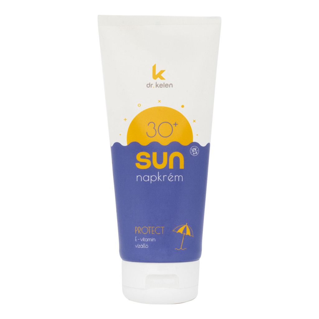 A Dr. Kelen Sun Protect F30+ napkrém 175 ml-es kiszerelésben erős fényvédelmet biztosít az UVA és UVB sugarak ellen. Antioxidáns hatóanyagai védik a bőrt az idő előtti öregedéstől, míg víztaszító formulája tartós védelmet nyújt fürdés és izzadás esetén is. Tartósítószer- és színezékmentes, arcra és testre egyaránt ajánlott.