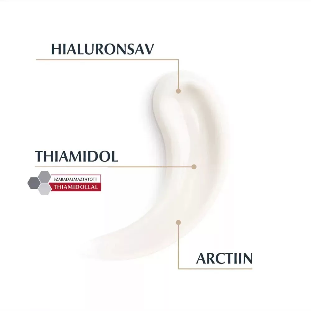 – Thiamidolt tartalmaz, amely szemmel láthatóan csökkenti az öregségi foltok megjelenését, és segít megelőzni újbóli kialakulásukat.