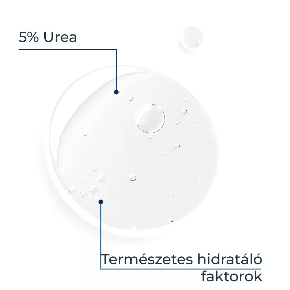 5% urea és természetes hidratálók kombinációja, amely gyengéden tisztítja és finoman hámlasztja az érdes bőrfelületet