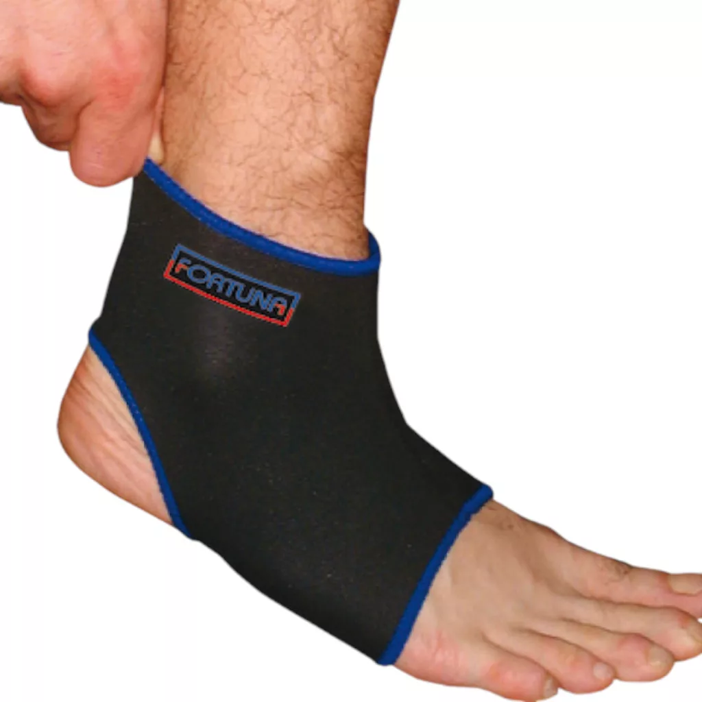 A Fortuna elasztikus neoprén bokarögzítő (M) stabil tartást és kényelmes kompressziót biztosít a bokának. A neoprén anyag melegen tartja az ízületet, fokozza a vérkeringést, és segíti a gyógyulást sérülések, rándulások vagy ízületi problémák esetén.