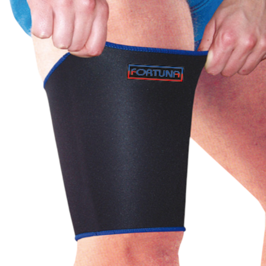 A Fortuna neoprén combszorító (S) stabil és kényelmes támogatást nyújt a comb izmainak. Melegen tartja az izmokat, fokozza a vérkeringést, és segíti a gyógyulást sérülések, húzódások vagy sportolás közbeni terhelés esetén.