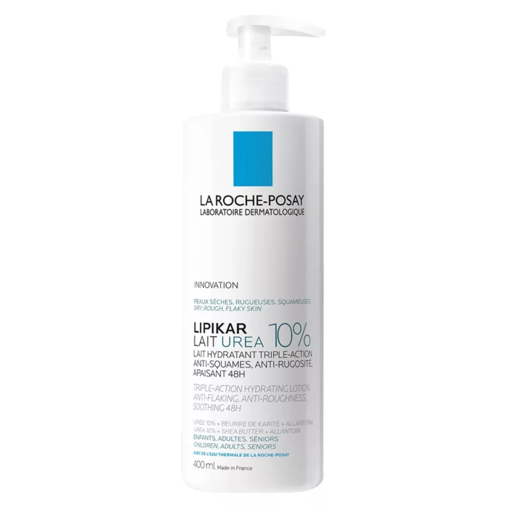 A La Roche-Posay Lipikar 10% Urea testápoló tej 400 ml egy hármas hatású hidratáló, mely kifejezetten a száraz, érdes és hámló bőr ápolására lett kifejlesztve. Formulája 10%-os ureát, allantoint és shea vajat tartalmaz, amelyek együtt segítenek enyhíteni a bőr feszülését, viszketését és hámlását. A termék klinikailag bizonyítottan csökkenti a száraz bőr jeleit és azok kiújulását, miközben akár 48 órás bőrnyugtató hatást biztosít. Rendszeres használata hozzájárul a bőr rugalmasságának helyreállításához, simábbá és komfortosabbá téve azt. A készítmény gyorsan felszívódik, nem hagy zsíros érzetet, és gyermekek, felnőttek és idősek számára egyaránt ajánlott.