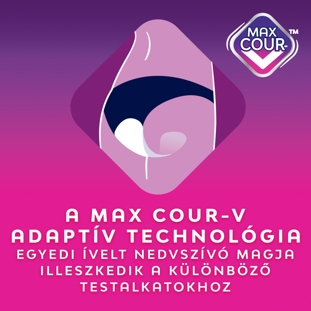 A Libresse Goodnight Ultra Large betét Max Cour-V™ technológiájával és 3 nedvszívó zónájával megbízható védelmet nyújt éjszaka, még erősebb vérzés esetén is.