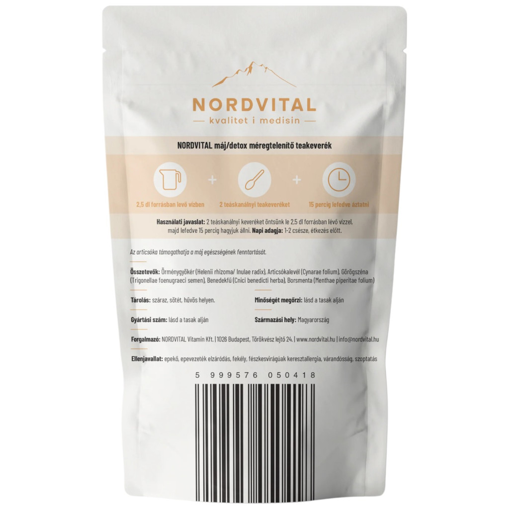 A Nordvital Máj / detox teakeverék articsókalevél és görögszéna felhasználásával támogatja a máj természetes méregtelenítő folyamatait, az epe működését és a komfortos emésztést.