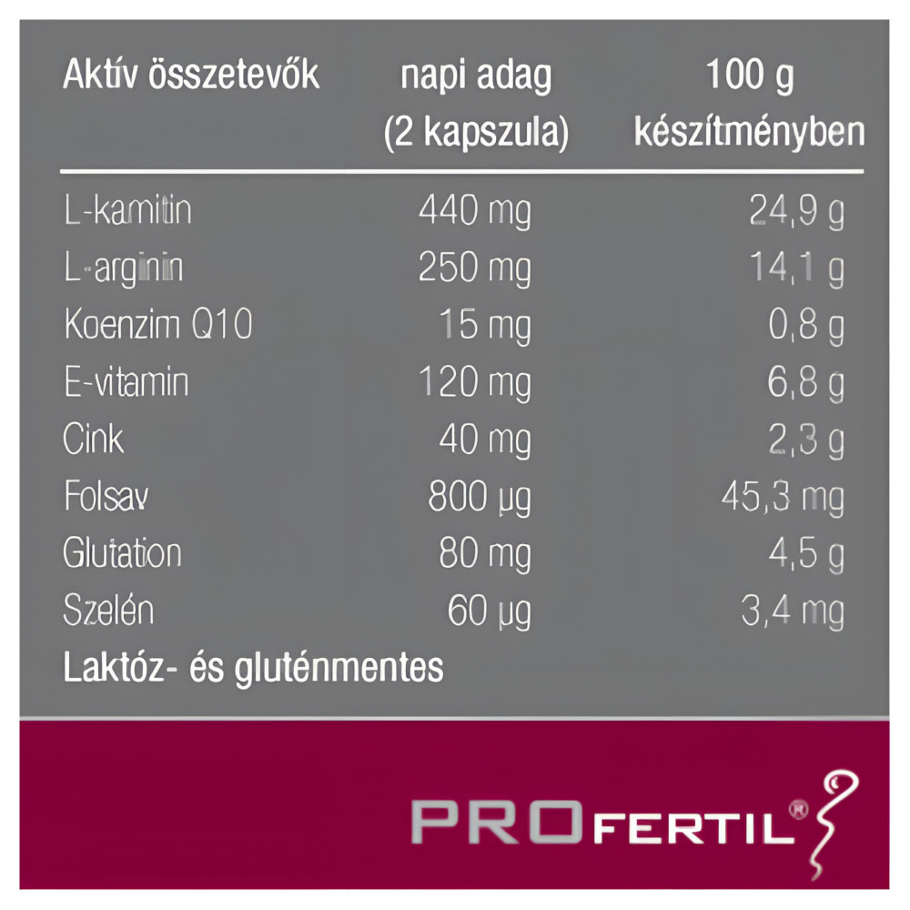 A PROfertil kapszula kifejlesztésére épp ezért a spermaképződés folyamatának egyes szakaszait lekövetve került sor. Az L-karnitint a szervezet természetes úton állítja elő, és az energia hordozójaként segíti a sejtrendszert, köztük a spermiumokat is. Tudományos kísérletek adatai igazolják, hogy az L-karnitin adagolása fokozza a spermiumok mozgékonyságát és mennyiségét is.