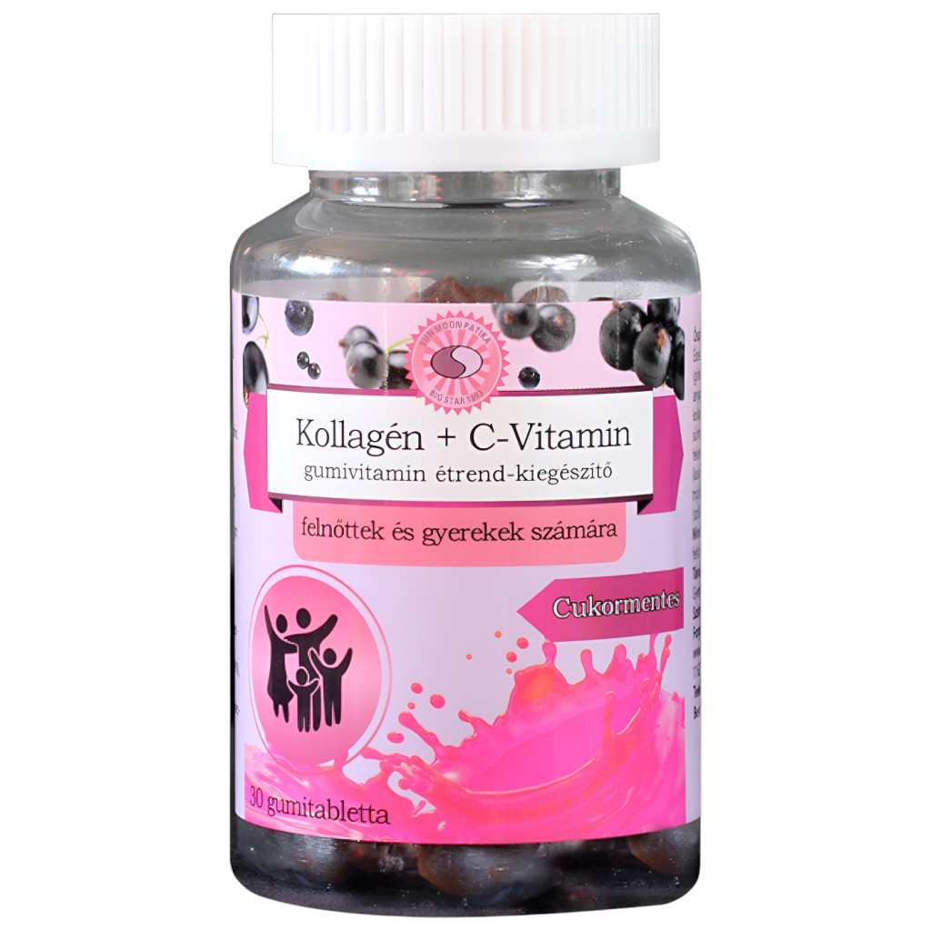 A Sun Moon Kollagén + C-vitamin gumivitamin 30 db egy ízletes, feketeribizli ízű, sötétbarna színű, cukormentes étrend-kiegészítő, amelyet felnőttek és gyermekek egyaránt fogyaszthatnak. A készítmény C-vitamint és kollagént tartalmaz, így egyszerre támogatja a szervezet immunvédelmét és a bőr természetes állapotának megőrzését.