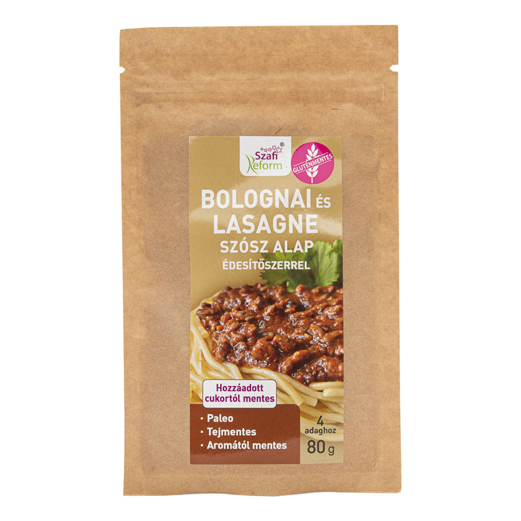 A Szafi Reform Bolognai és Lasagne szósz alappor édesítőszerrel egy szénhidrátcsökkentett, gluténmentes és laktózmentes étkezési alap, amely lehetővé teszi a klasszikus bolognai és lasagne szószok gyors és egyszerű elkészítését.