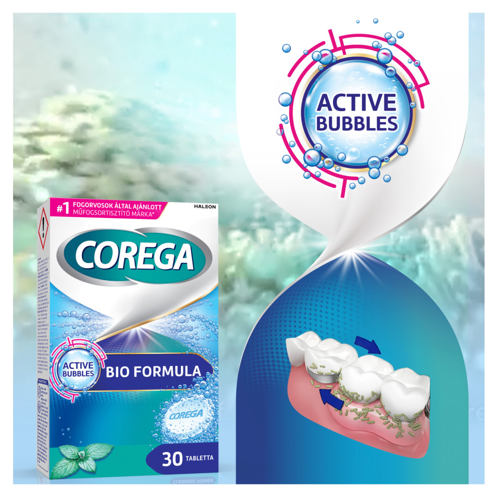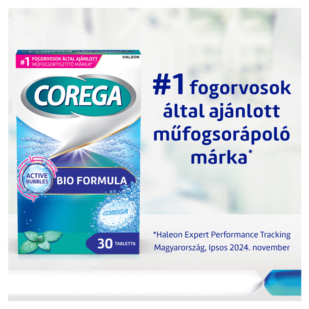A Corega Bio Formula műfogsortisztító tabletta ideális választás a teljes és részleges műfogsorok, valamint kivehető fogászati eszközök, például fogszabályzók napi tisztításához. Speciális 4 az 1-ben formulája antibakteriális összetevőket, tisztító komponenseket, aktív oxigént és elszíneződés eltávolítókat tartalmaz, amelyek együttesen biztosítják a műfogsor higiénikus tisztaságát és frissességét.