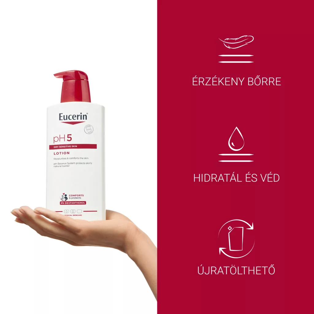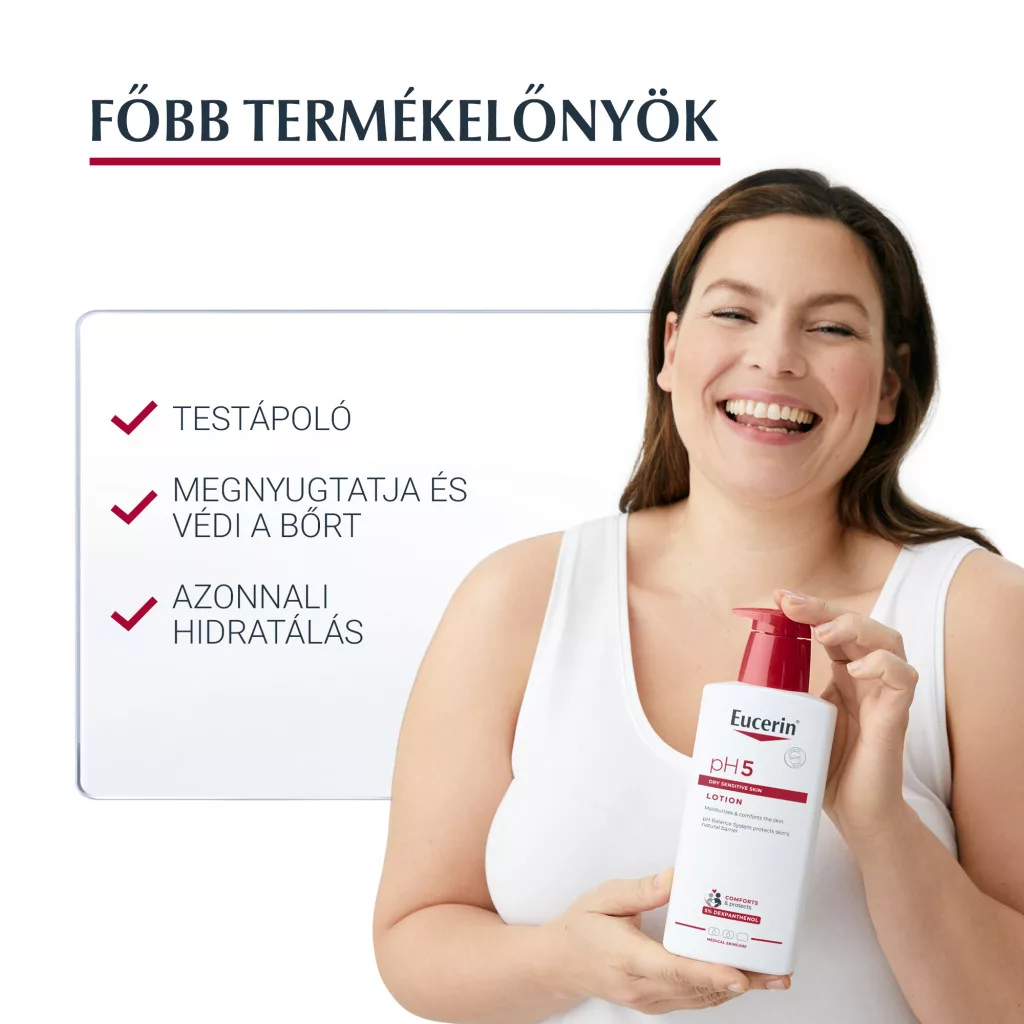 Az Eucerin pH5 intenzív testápoló kifejezetten a száraz és érzékeny bőr mindennapi ápolására lett kifejlesztve. Dexpanthenollal gazdagított összetétele azonnali komfortérzetet biztosít, miközben támogatja a bőr természetes védekezőképességét.
