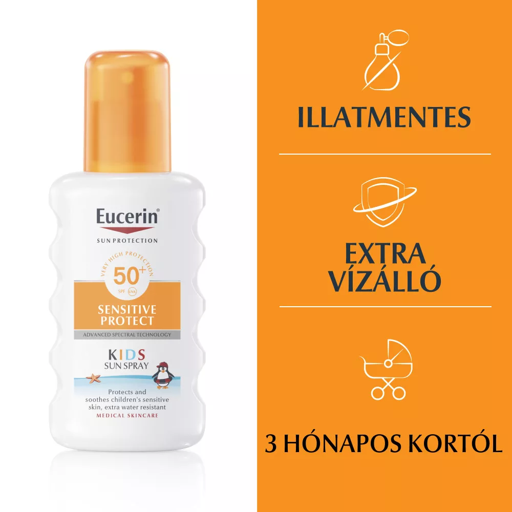Az Eucerin Sun Sensitive Protect Gyermek napozó spray SPF50+ kifejezetten a gyermekek érzékeny bőrének védelmére lett kifejlesztve, hogy hatékony védelmet nyújtson a napégés és a hosszú távú bőrkárosodás ellen, még intenzív napsugárzás esetén is.