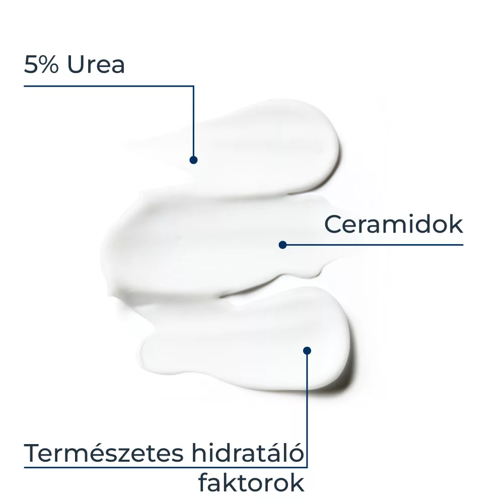 – 5% urea, ceramidok és természetes hidratáló faktorok hármas hidratáló komplexe, amely megköti a nedvességet és segít megelőzni a további vízvesztést
