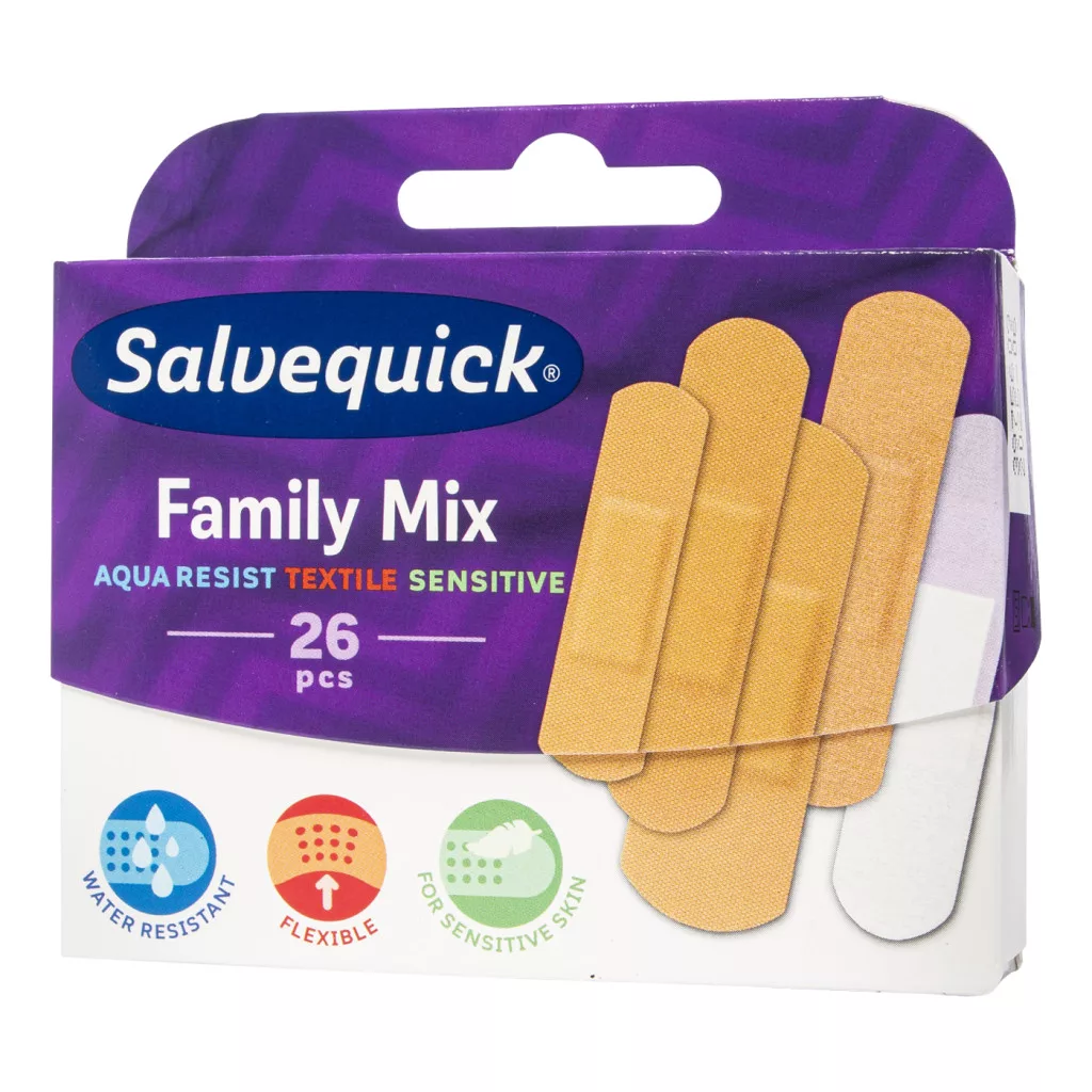 A Salvequick Med Family Mix sebtapaszcsomag 26 darab különböző típusú és méretű tapaszt tartalmaz, amelyek ideálisak kisebb sérülések, vágások és horzsolások ellátására. A csomagban vízálló, rugalmas textil és érzékeny bőrre tervezett tapaszok is megtalálhatók, így az egész család számára megfelelő választás.